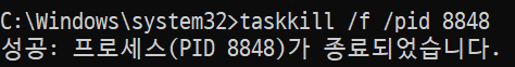 4. pid 삭제 - taskkill /f /pid [확인한 pid]