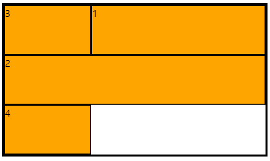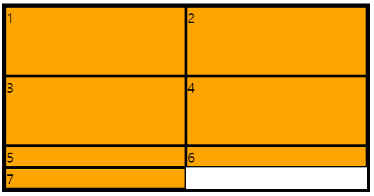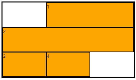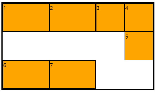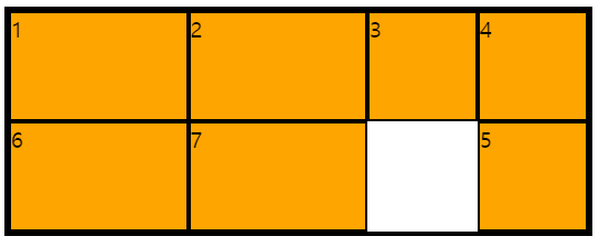 여기에서 grid-auto-flow: dense를 사용하면 아래와 같이 변한다.