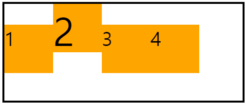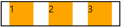 다른 값으로는 start, end, center, space-between(시작점과 끝점에 붙어서 나머지 공간 균등하게 분배), space-around(각 열의 왼쪽과 오른쪽의 여백 균등하게 분배), space-evenly(모든 여백 균등하게 분배)가 있다.