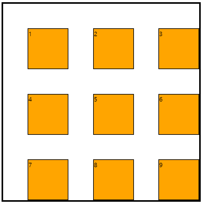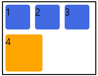 이렇게 되면 컨테이너의 오른쪽 상단에 두 개의 셀 크기만큼 빈 공간이 생긴다.