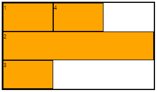 grid-auto-flow의 값으로 dense만 입력하게 되면 앞에 row가 생략되어 있는 것이다.