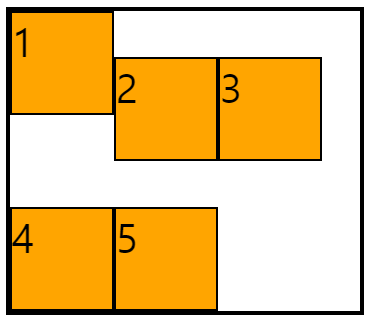 2번 아이템이 사용할 수 있는 셀이 3칸이므로 아래 그림처럼 한 줄을 다 차지하게 된다.