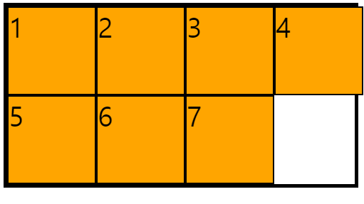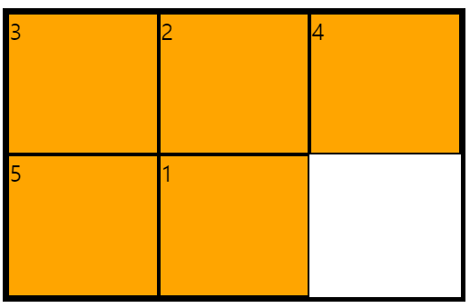이럴 떄 암시적인 행으로 내려가는 것이 아니라 빈공간을 차지하게 만들고 싶다면 grid-auto-flow: dense를 이용하면 된다.