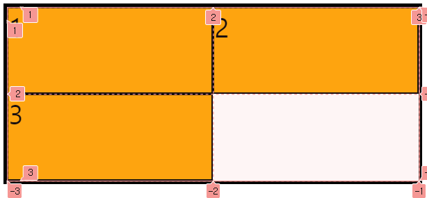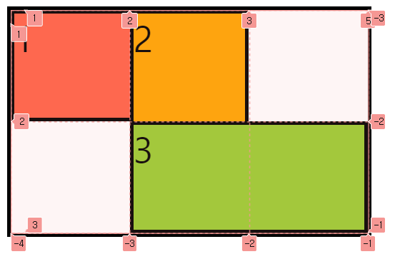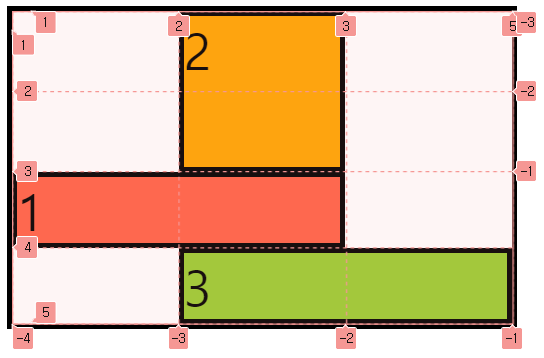 이런 식으로 라인의 양수와 음수 번호를 이용해서 아이템을 원하는 위치에 배치할 수 있다.