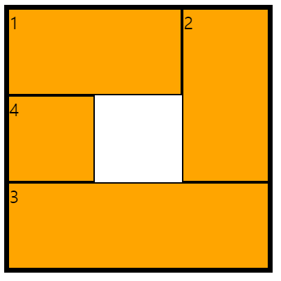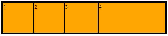 위 css 코드에서 1번 아이템이 컬럼 라인 2번에서 시작해서 -4로 끝나기 때문에 아이템이 위처럼 배치된다.