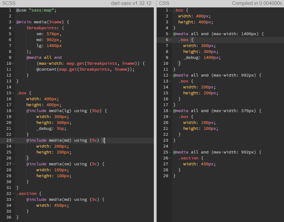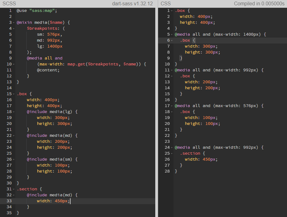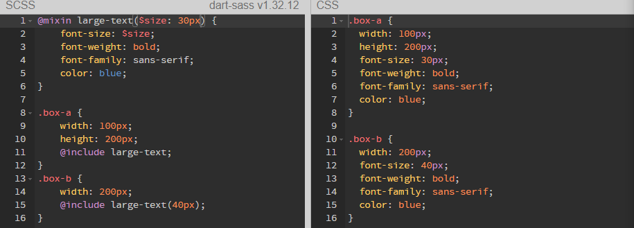 위 코드를 @mixin을 대체한 코드는 다음과 같다.