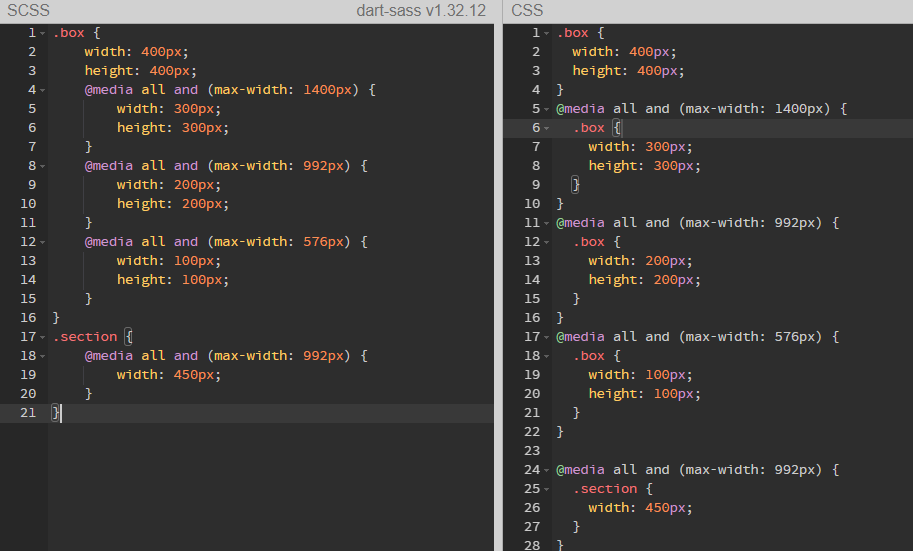아래의 예제는 미디어 규칙의 브레이크 포인트가 달라질 때마다 동일한 값을 사용하는 모든 부분을 직접적으로 수정해줘야 한다.
