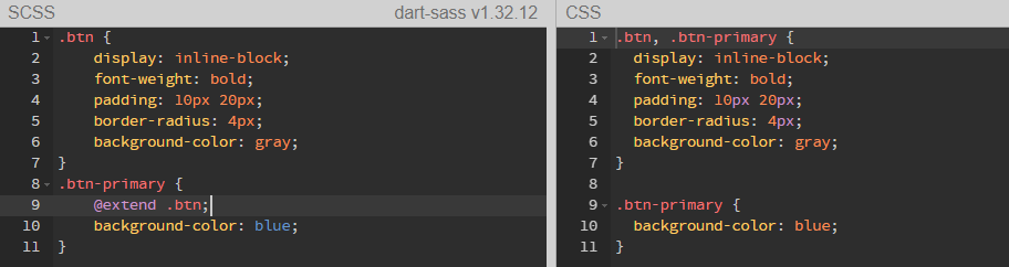@extend를 통해 이미 작성해둔 선택자의 이름을 명시하면 그 선택자가 가진 스타일을 다른 요소에 적용시킬 수 있다.