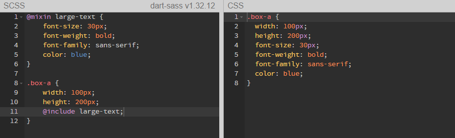만들어 둘 스타일을 @mixin 규칙으로 정의하고 필요한 곳에서 @include 규칙을 통해 사용할 수 있다.