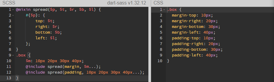 이러한 점을 보완해서 @mixin 규칙을 새로 만들어 줄 수 있다.