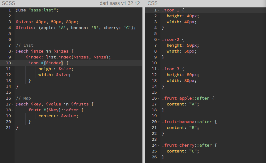 Sass에서 map 데이터를 조회할 때 사용하는 내장 모듈을 @use "sass:map";로 가져온다.