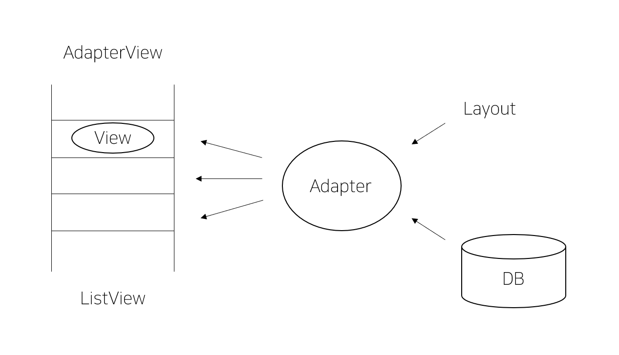 - newView() - 기존 커스텀 Adapter의 getView()에서 custom view를 생성하는 역할 부분 -> LayoutInflater를 사용하여 ListView에 표시할 layout 객체 생성