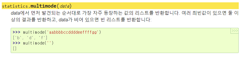 다른 풀이들 찾아보니까 statistics 모듈을 사용한 풀이가 별로 보이지 않았다.