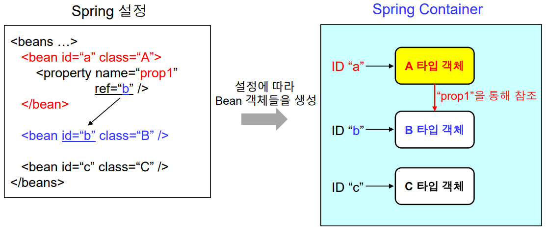 - Container는 property로 전달할 의존 객체를 먼저 생성