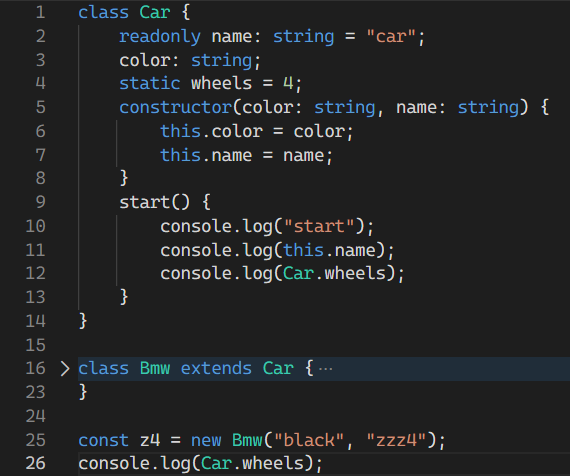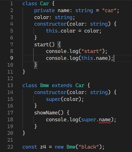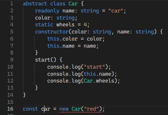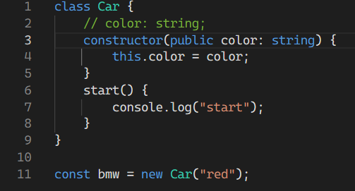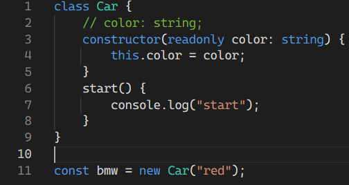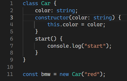 하지만 타입스크립트에서는 클래스를 작성할 때는 멤버 변수를 미리 선언해야 한다.