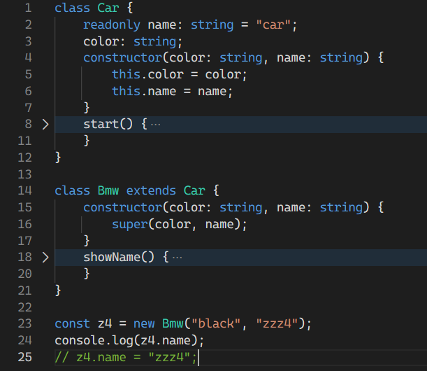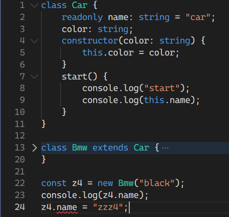 name을 수정할 수 없게 만들고 싶은 경우에는 readonly 키워드를 사용하면 된다.