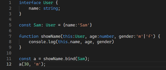 매개변수가 있는 경우에도 제일 앞에 this의 타입을 적어준다.