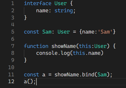 타입스크립트에서 this의 타입을 정할 때는 함수의 첫 번재 매개변수 자리에 this를 쓰고 타입을 입력해주면 된다.