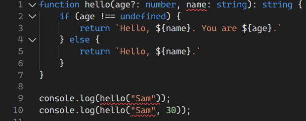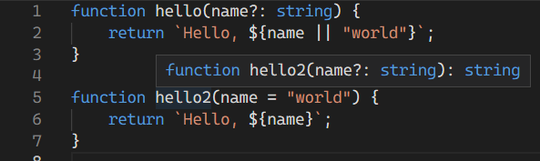인터페이스처럼 함수의 매개변수도 옵셔널로 지정할 수 있다.