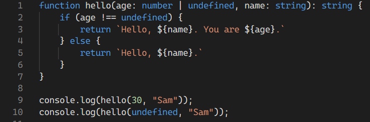 age를 number와 undefined를 받을 수 있게 해주고 명시적으로 undefined를 전달하는 방식이다.