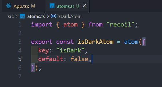 src 폴더 밑에 atoms.ts 파일을 만들고 다음과 같이 작성하였다.
