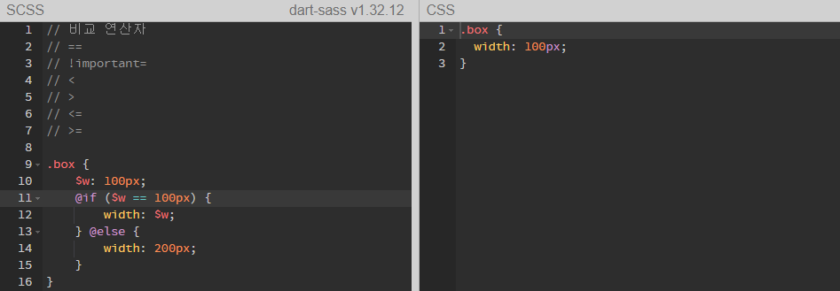 sass에서 제공하는 //주석은 컴파일 된 결과에 나타나지 않는다.