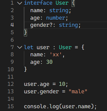 위 코드에서 빨간 줄이 쳐지는 이유는 user에 gender가 없기 때문이다.