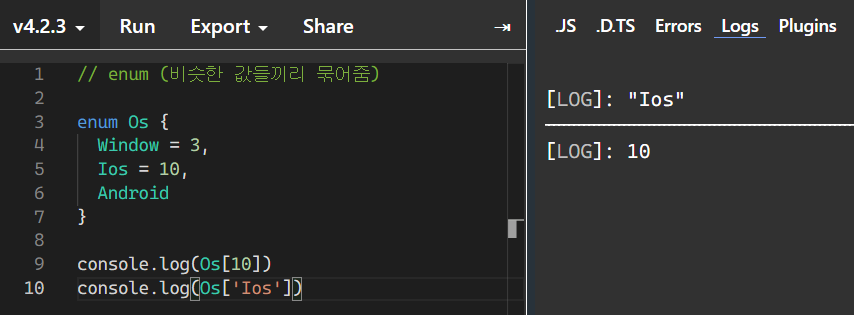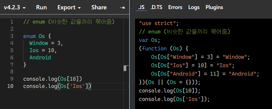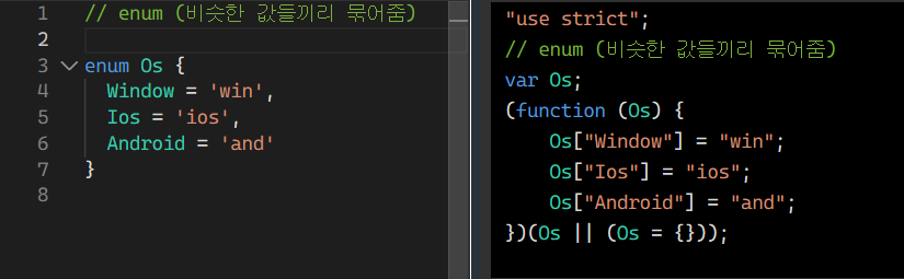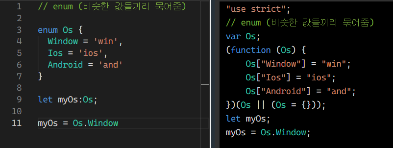 myOs 타입을 Os로 선언해두면 Window, Ios, Android만 입력할 수 있다.